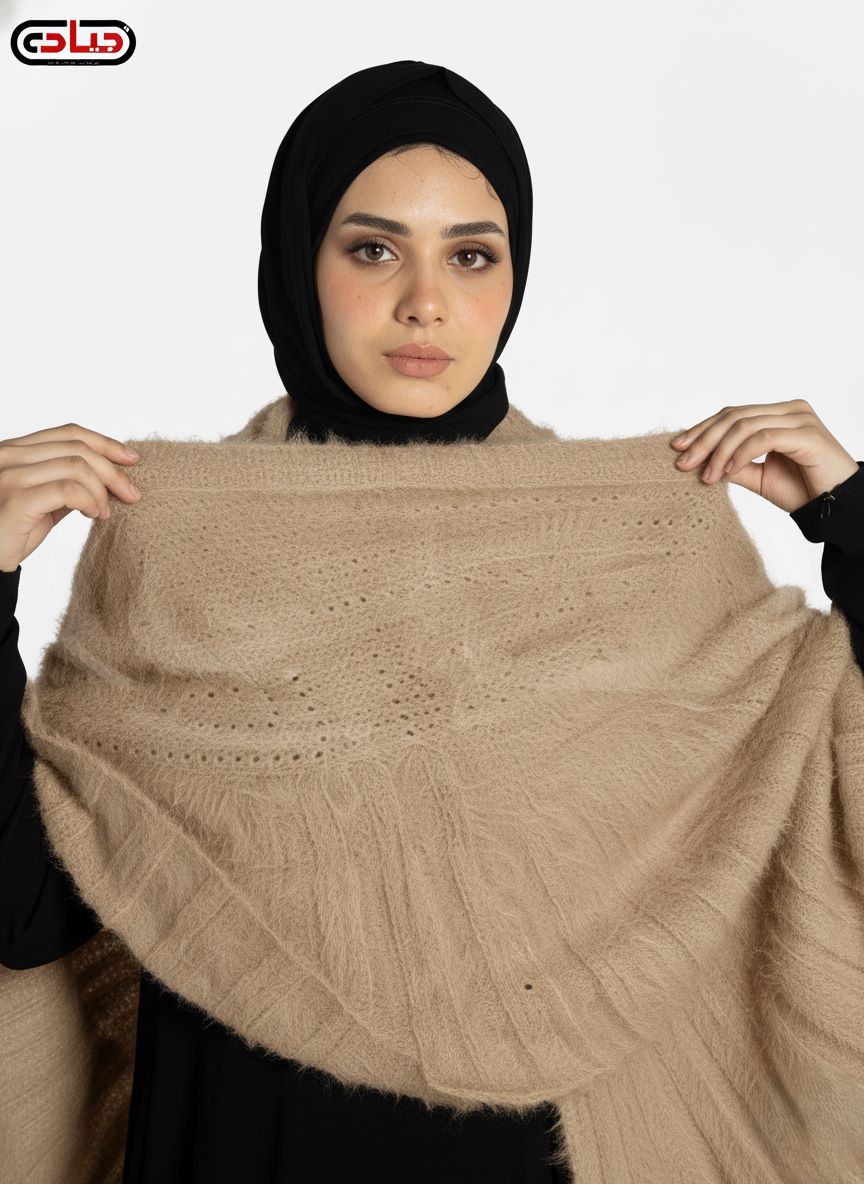 شال نسائي شتوي مثلث مفتوح بتلبيس قصير من الصوف الناعم