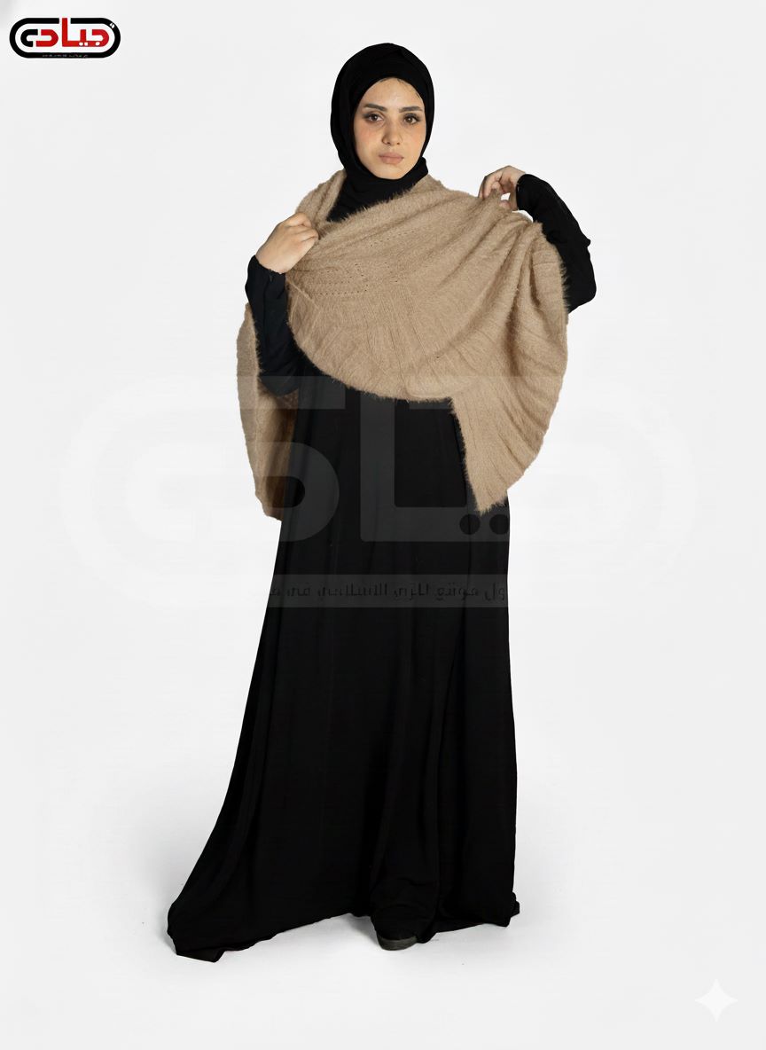 كاب محجبات مقفول سادة بأستك داخلي وشريط ستان علي الرقبة تلبيس علي الراس او الكتف من الكريب السعودي داكن السواد