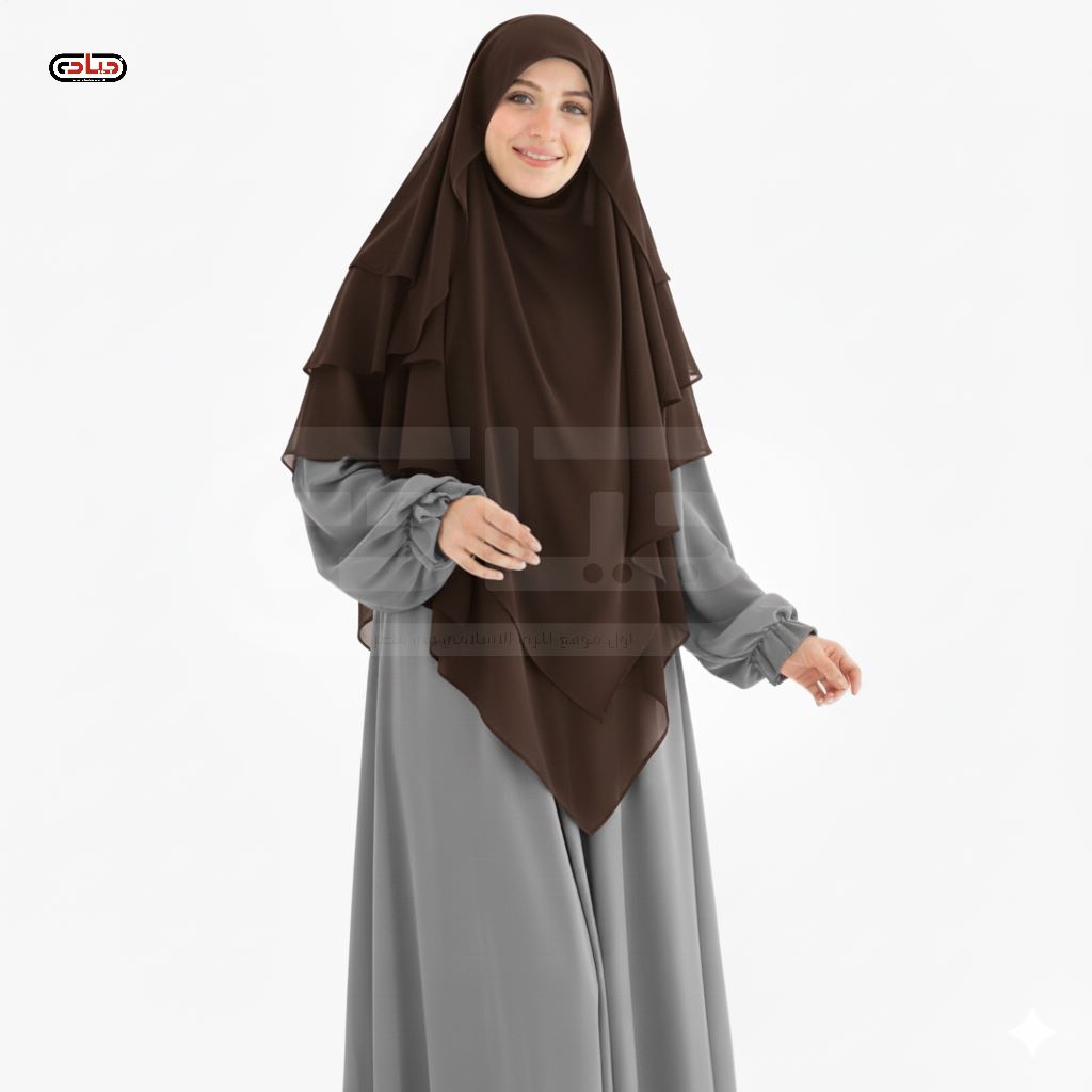 خمار فرنسي مثلث 3 طبقات بتندا ورباط داخلي من الشيفون الخفيف بحجم قياسي xl