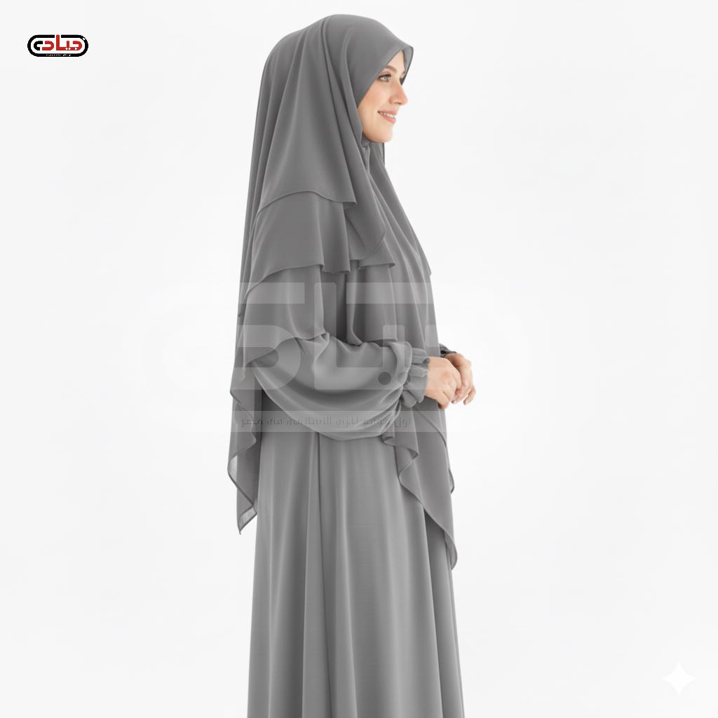 ادناء فرنسي بليسية مكون من عباية فضفاضة وخمار فرنسي بليسية طبقات بحجم قياسي xxl