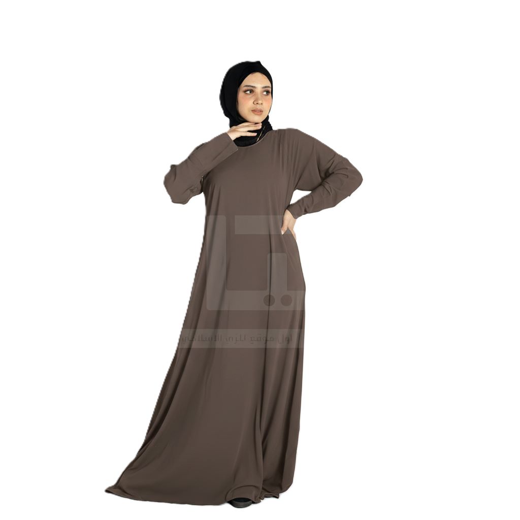 عباية سادة كلوش بنهاية واسعة برقبة مستديرة نصف ياقة مزودة بكبسولة وسحّاب صغير حجم M،XL،3XL