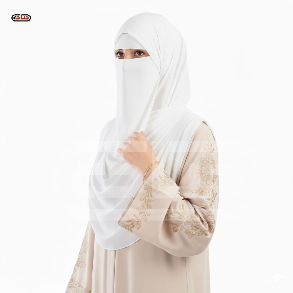 طقم حرملة من الكريب السعودي مكون من حرملة قصيرة ،خمار ماليزي ،نقاب لثمة،شريطة للجبهة
