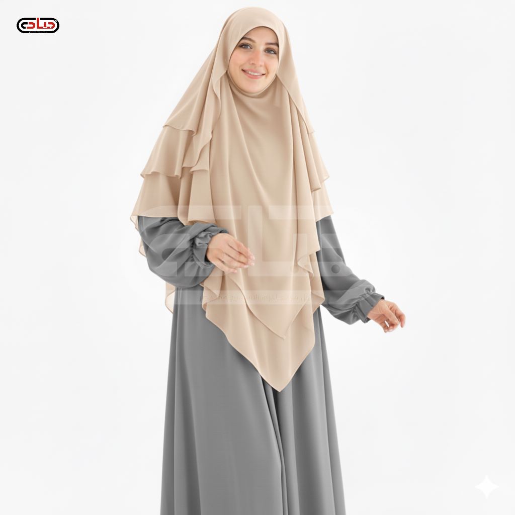 خمار فرنسي مدرج 3 طبقات برباط داخلي بحجم قياسي xl من الكريب السعودي