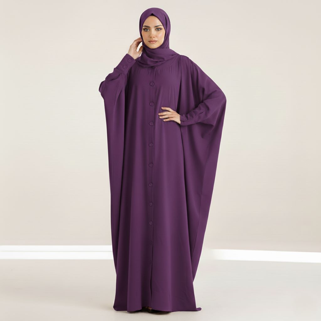 ملحفة فضفاضة من الرويال تلبيس علي الكتف بأزرار امامية بحجم فضفاض يناسب الأحجام الكبيرة xxl