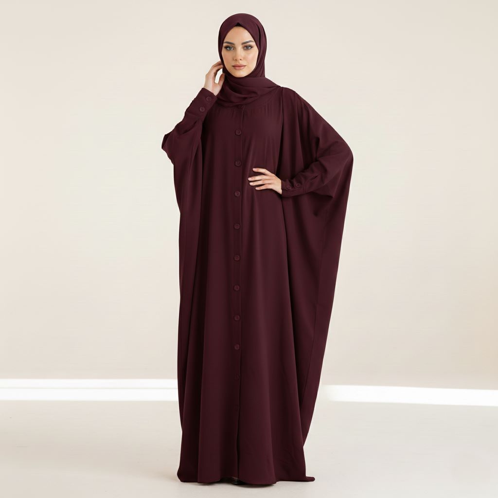 ادناء فراشة فضفاض مكون من عباية طبقتين بفراشة جانبية مع خمار تركي ونقاب استك من الرويال الملكي بحجم قياسي xxl