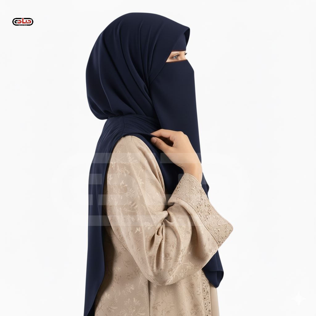 طقم حرملة من الكريب السعودي مكون من حرملة قصيرة ،خمار ماليزي ،نقاب لثمة،شريطة للجبهة