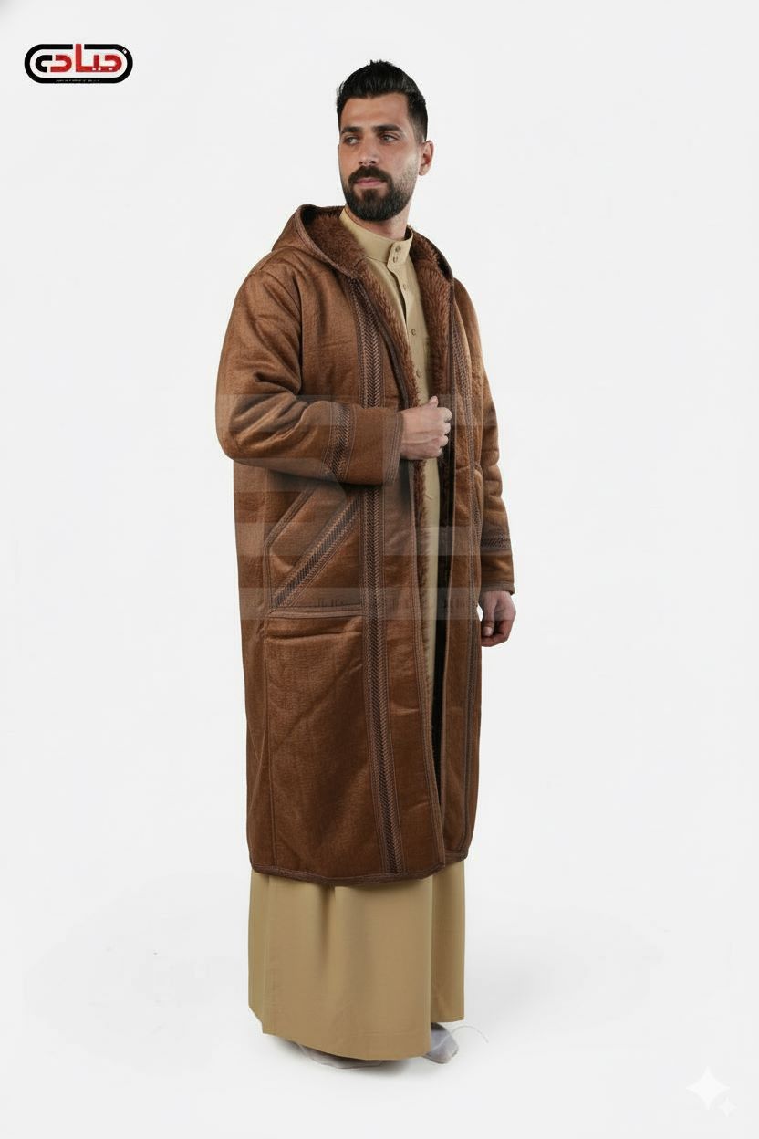 عباية رجالي شتوي بتطريز بسيط من الخوج الناعم بقياس موحد