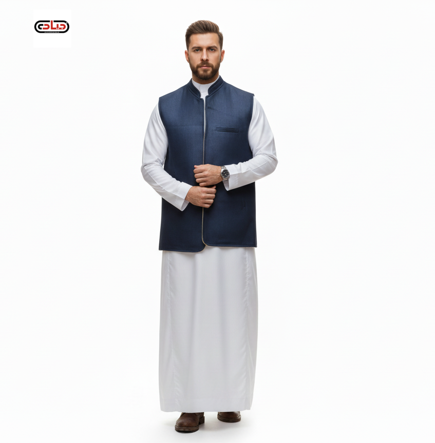 جلابية رجالي شتوي موديل سعودي نص ياقة بأزرار كبس وبكم بالطو بدون اساور من الصوف الانجليزي شوفيت