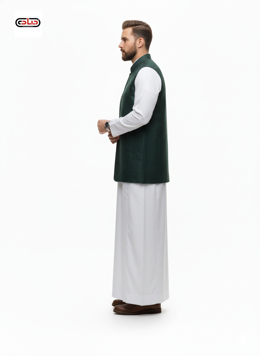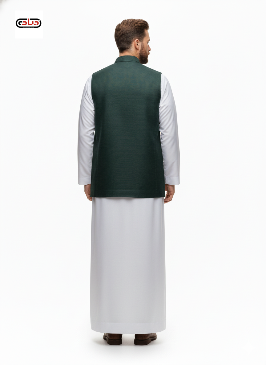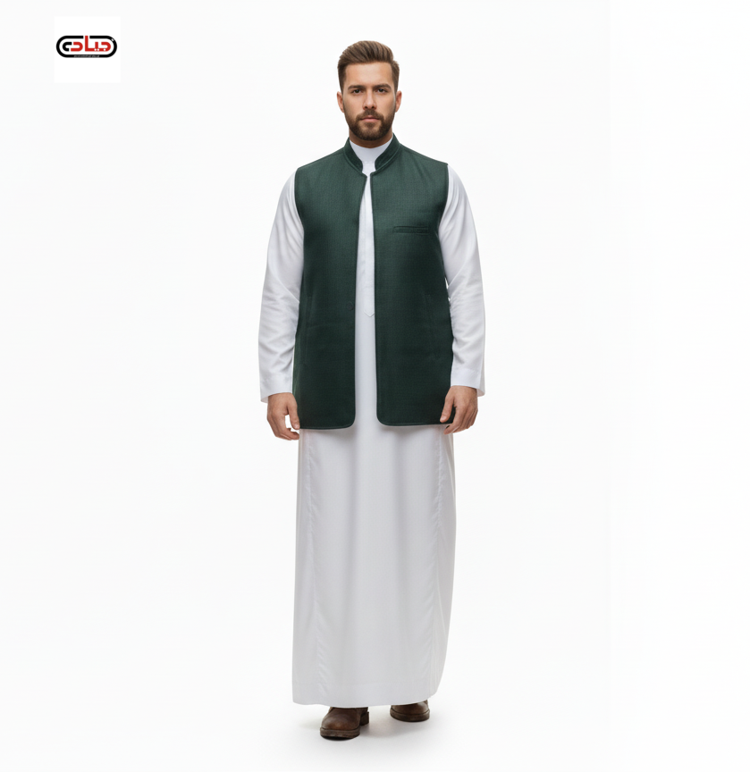 فيست شتوي للرجال دوبل فيس سادة ومضلع من الصوف الناعم