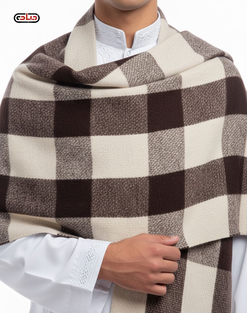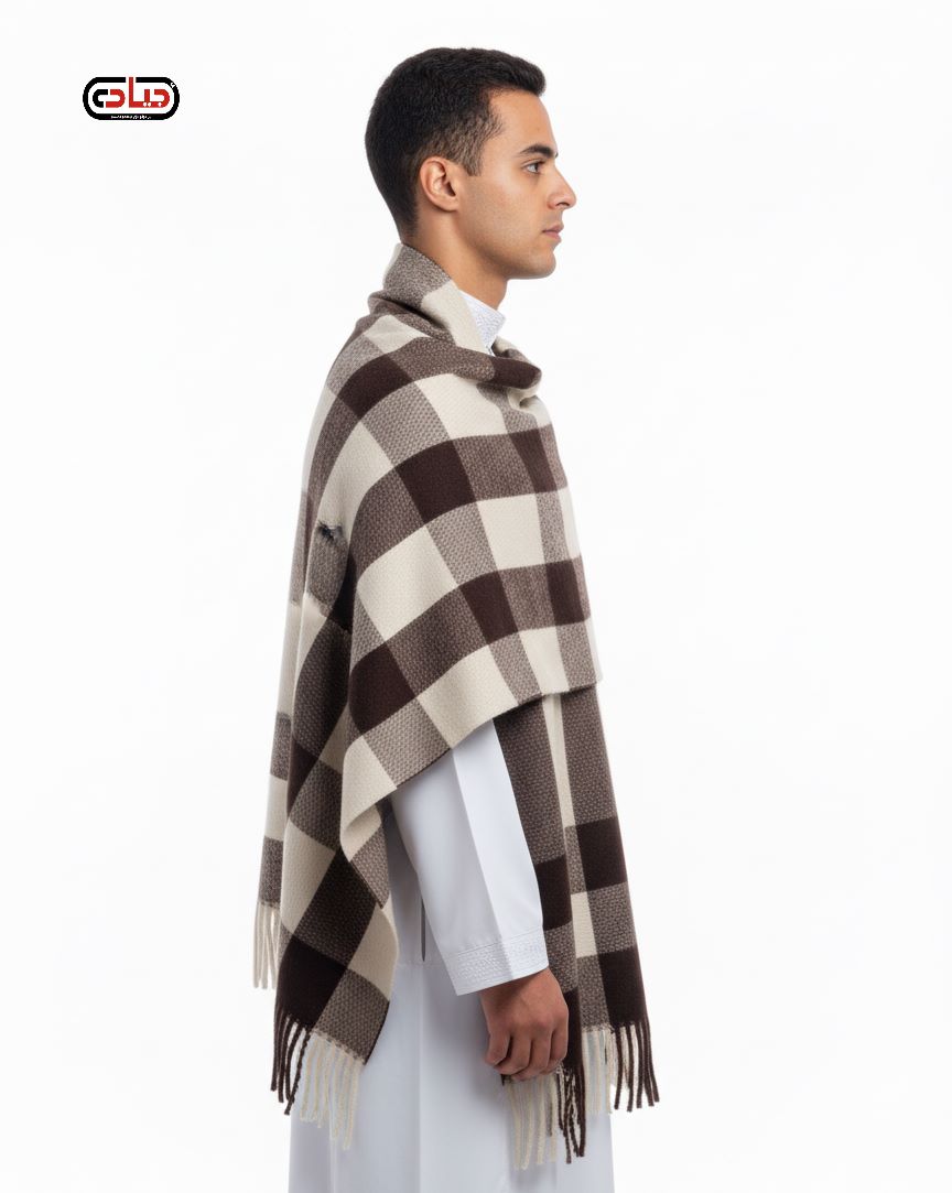 شال رجالي دوبل فيس من الصوف الناعم بحجم متوسط 2 م طول x 70 سم عرض