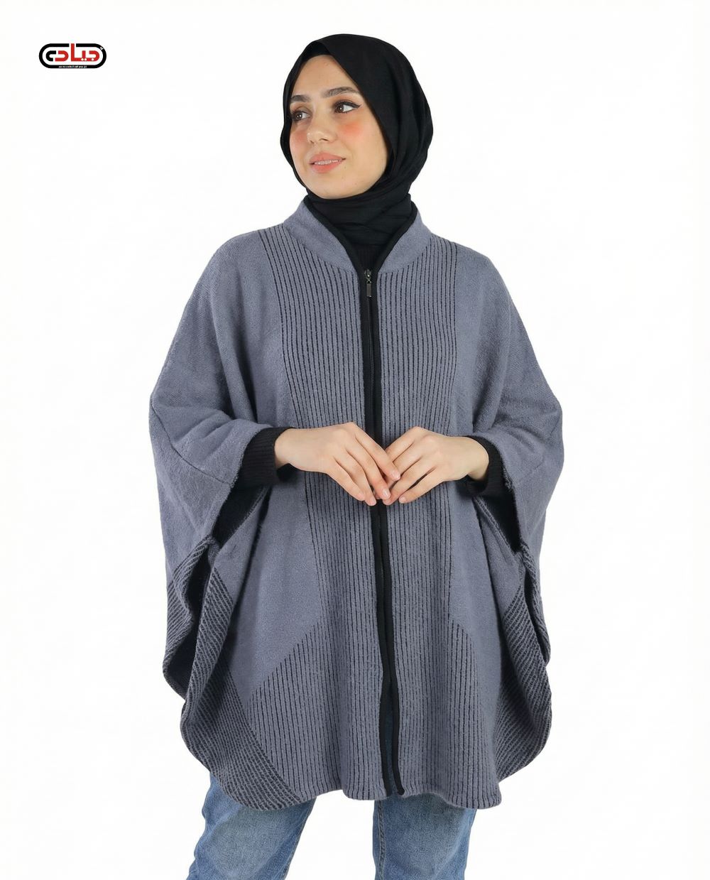 ادناء فضفاض مكون من قطعتين ،كاب بسحّاب كامل مع جيبة كلوش من قماش الرويال الملكي عالي النعومة بحجم قياسي xxl