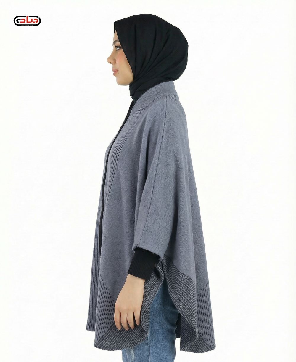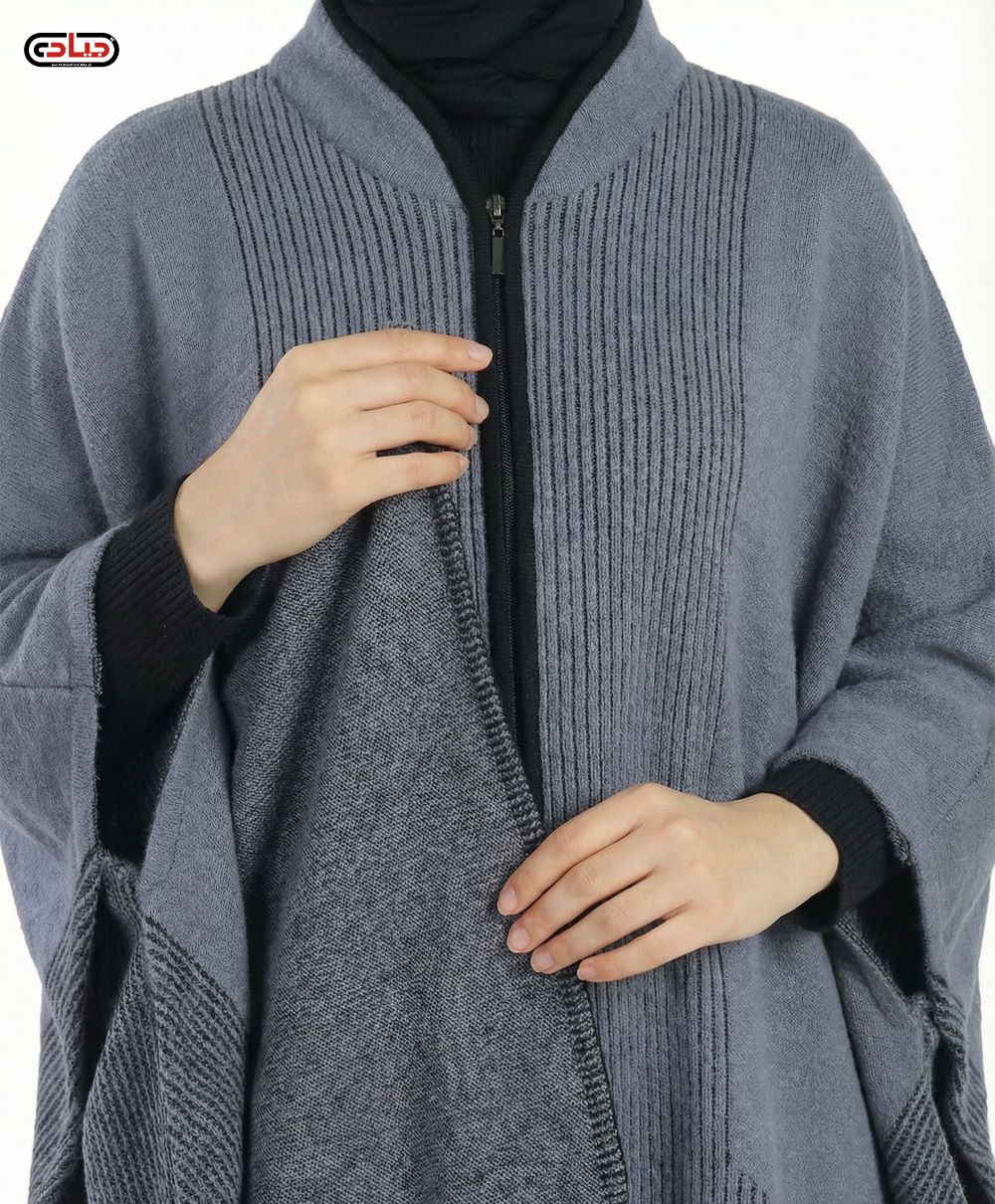 بونشو نسائي مقفول من الصوف الناعم مع ازرار جانبية