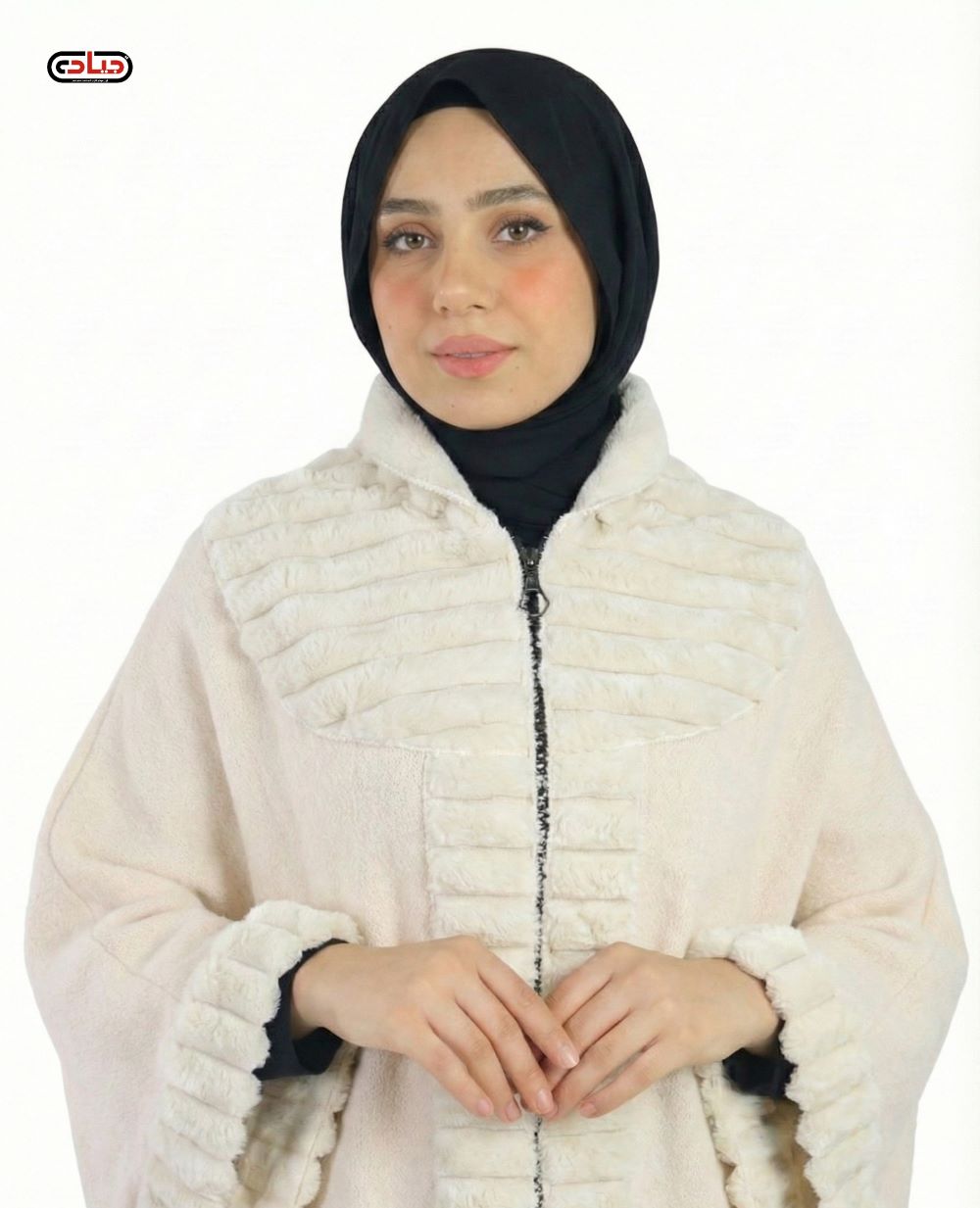 كاب مفتوح بسحّاب أمامي كامل وأستك داخلي تلبيس مزدوج علي الراس او الكتف من الكريب السعودي عالي الجودة