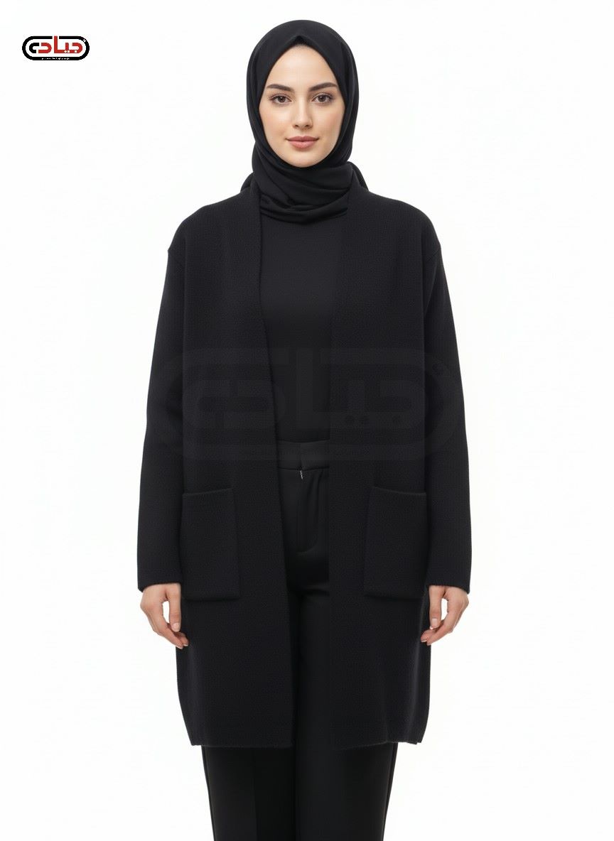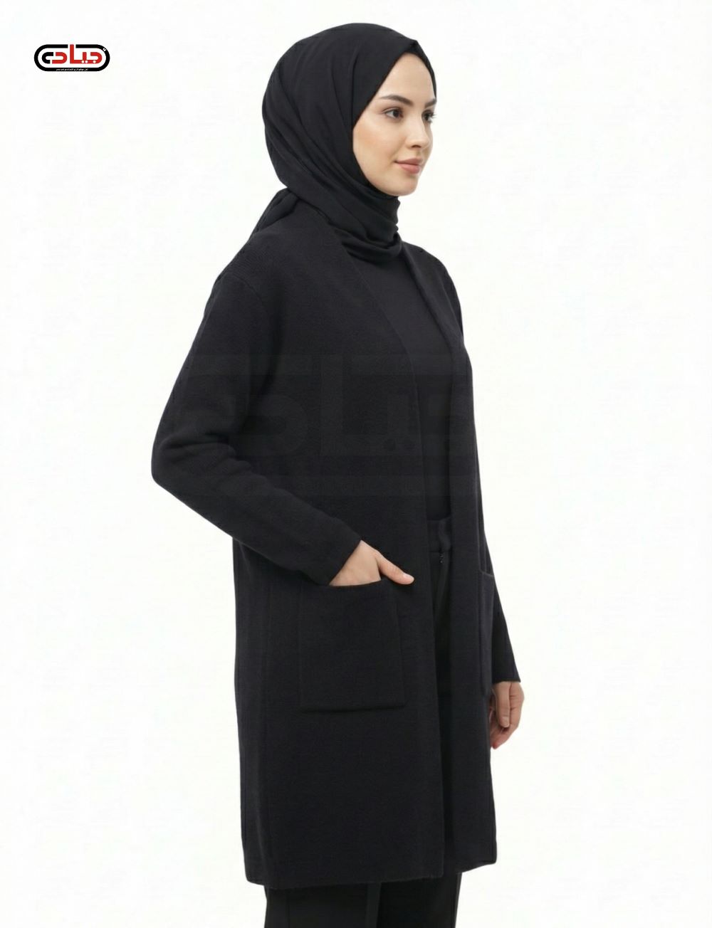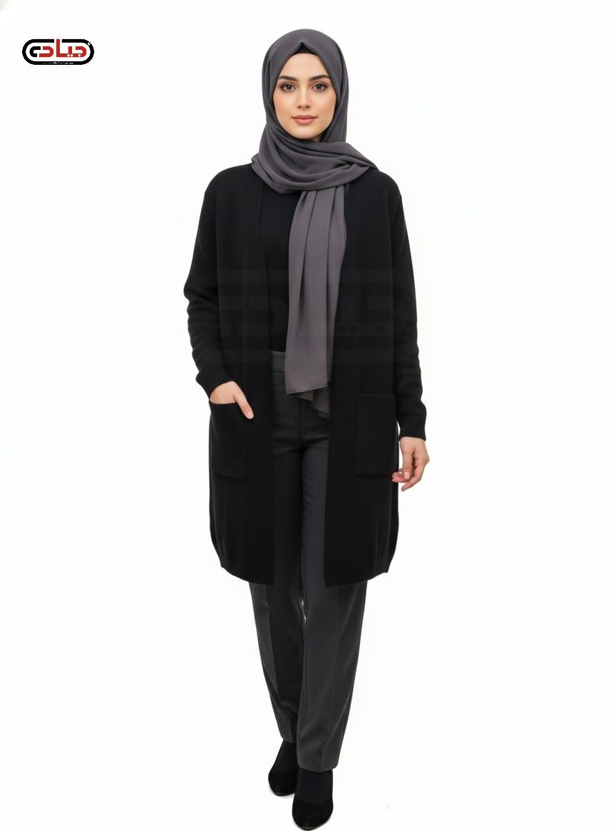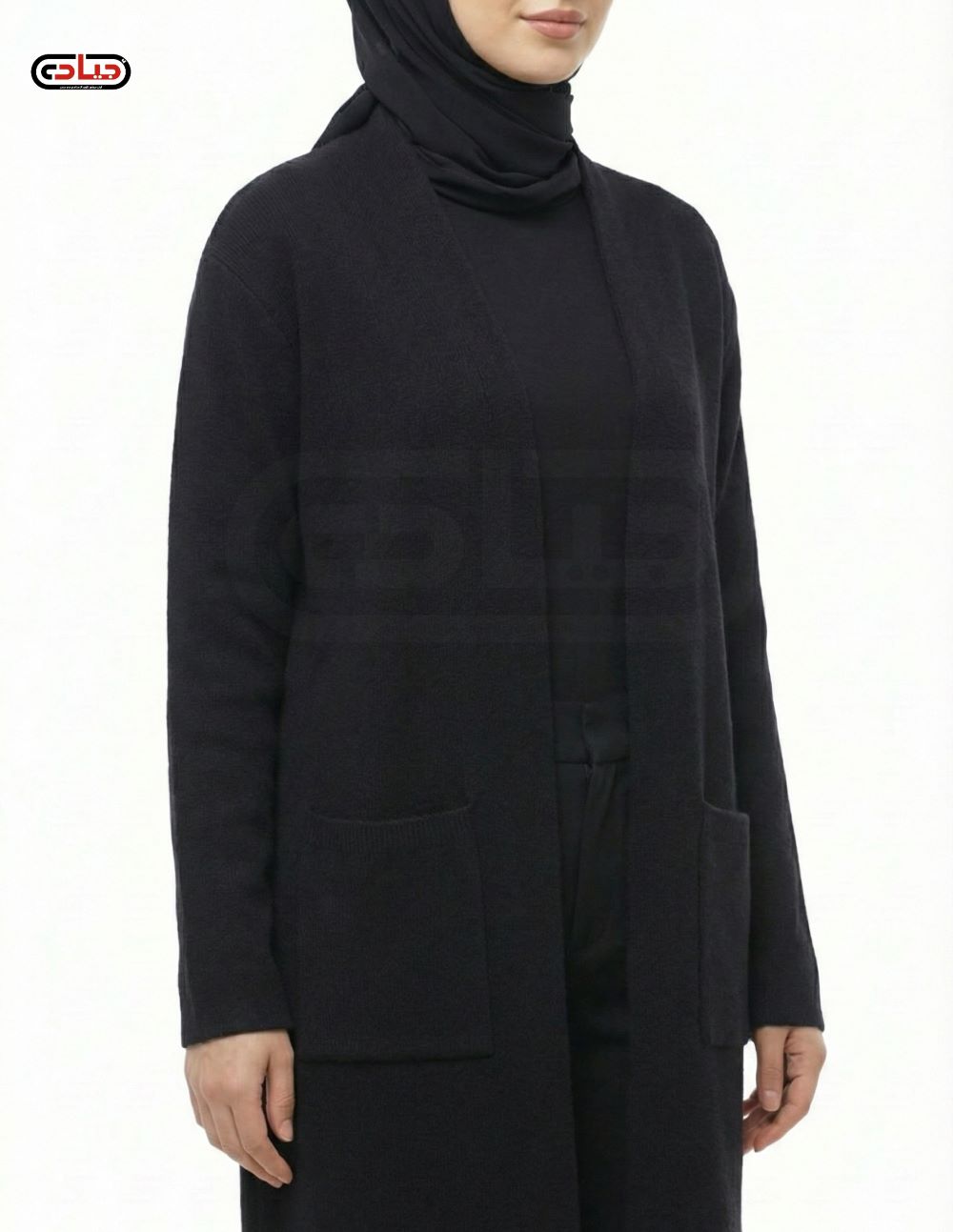 كارديجان نسائي سادة بجيوب جانبية بدون ياقة من الكشمير عالي النعومة بحجم قياسي