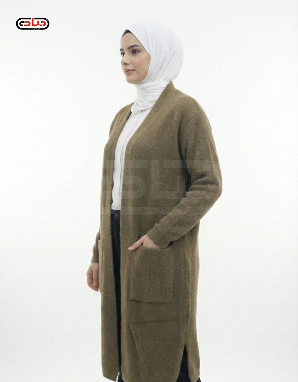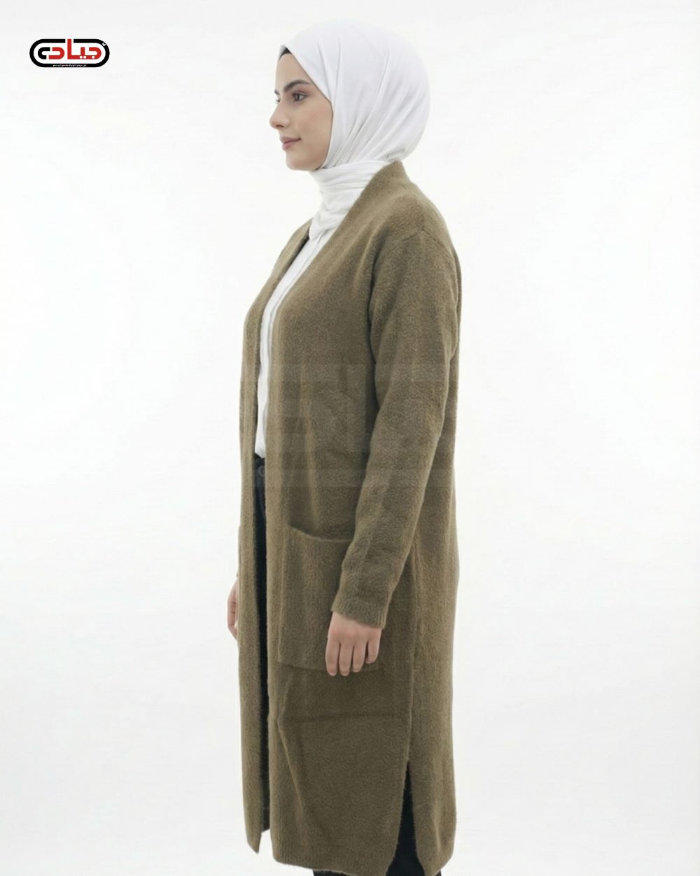 كاب مفتوح بسحّاب أمامي كامل وأستك داخلي تلبيس مزدوج علي الراس او الكتف من الكريب السعودي عالي الجودة