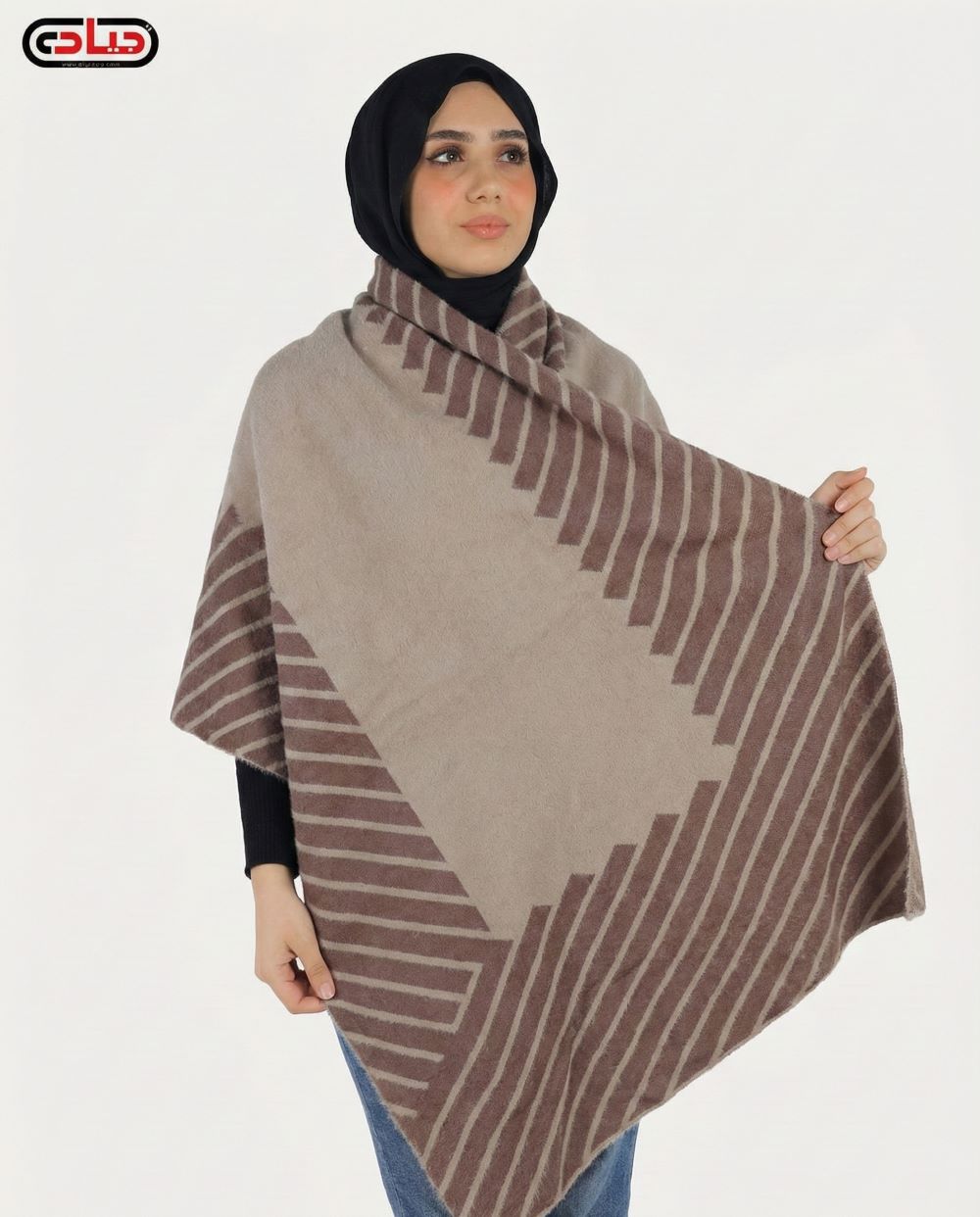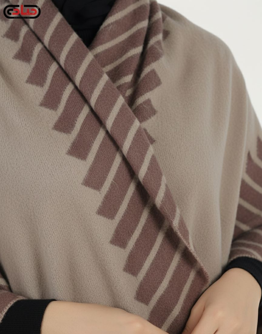 شال نسائي شتوي مستطيل من الصوف الناعم برسومات عصرية