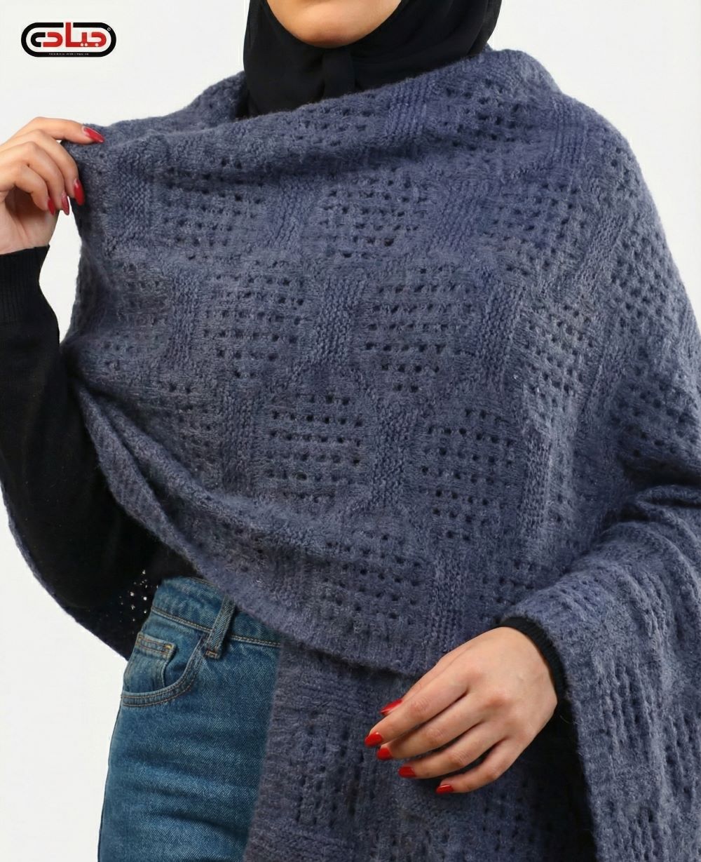 شال نسائي شتوي مثلث مفتوح بتلبيس قصير من الصوف الناعم