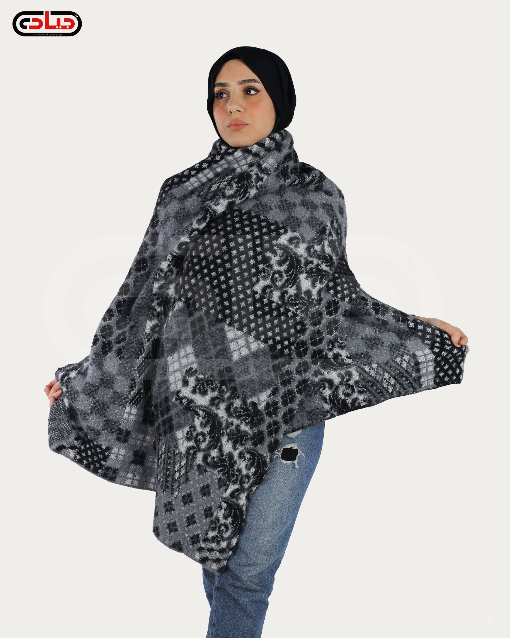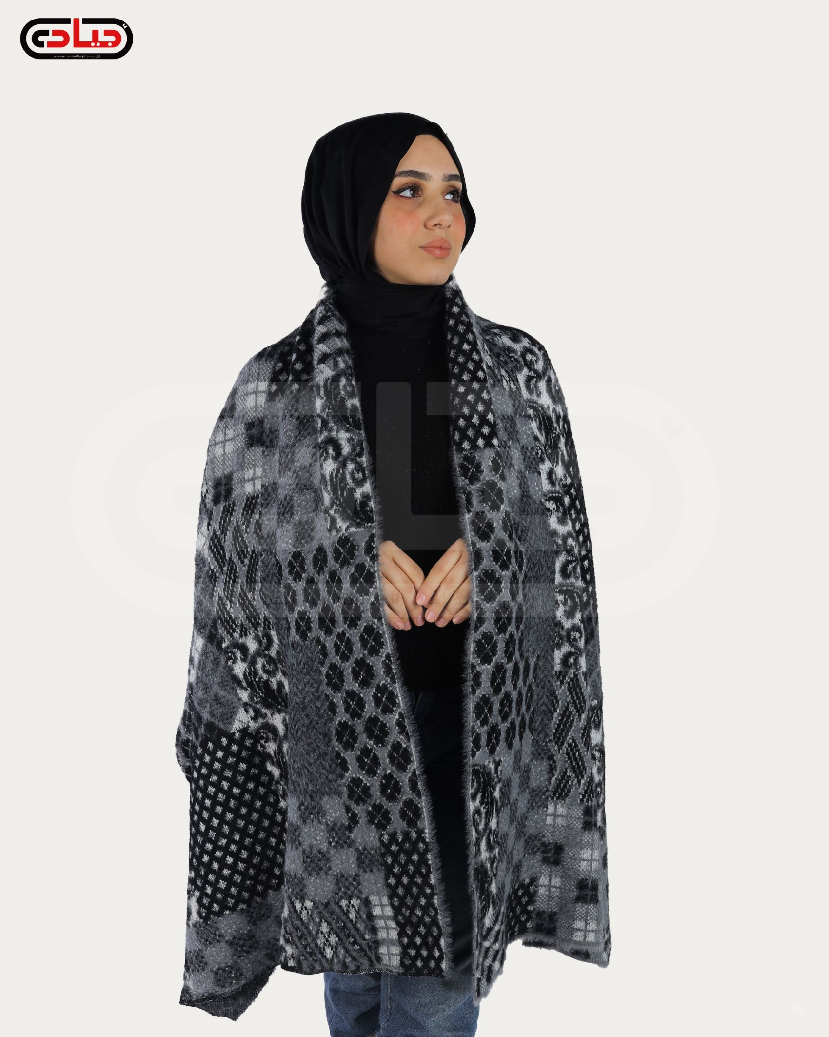 وشاح مغربي فضفاض بزنط غير ثابت من الكريب السعودي عالي الجودة