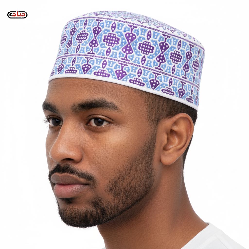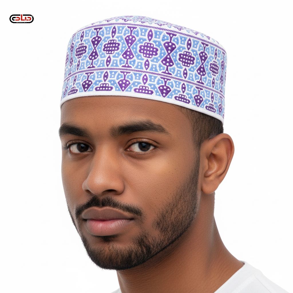 طاقية رجالي موديل اندونيسي بارتفاع متوسط وتطريز بارز موديل مرن غير مقوي بقياس موحد