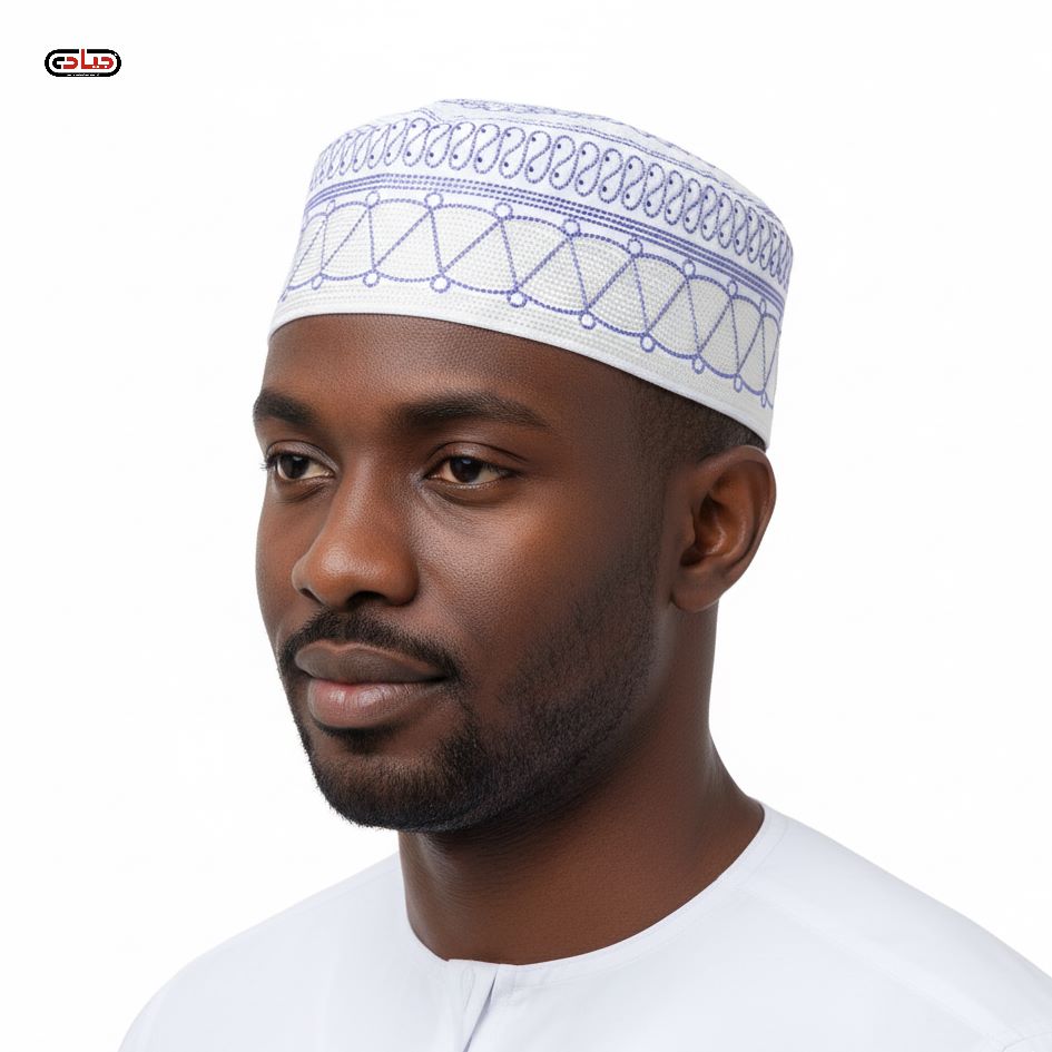 طاقية رجالي موديل اندونيسي بارتفاع متوسط وتطريز بارز بمقاسات متعددة