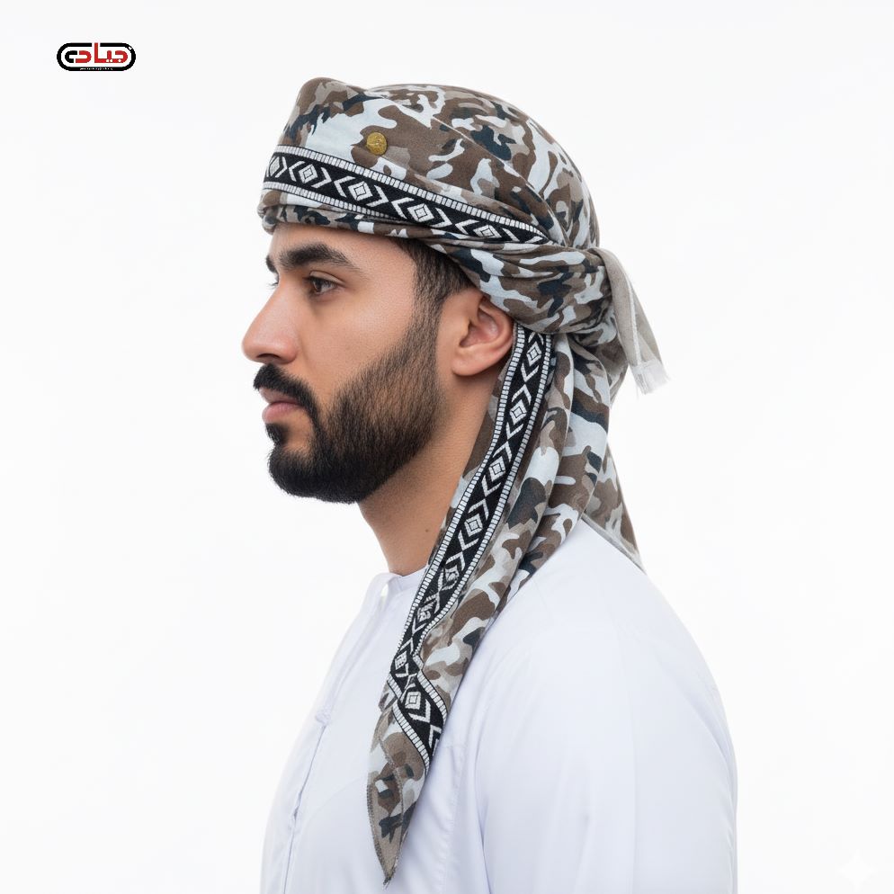 غترة رجالي أنيقة بتصميم عصري مميز، مزينة بتطريز فني راقٍ على الأطراف بنمط هندسي تقليدي. تتميز بنقشة عسكرية بدرجات الأزرق والرمادي والبني، مما يمنحها مظهراً فريداً يجمع بين الأصالة والحداثة. مصنوعة من قماش عالي الجودة يوفر الراحة المثالية في مختلف الأجواء. تحتوي على تفاصيل دقيقة من التطريز التقليدي باللون الأبيض، مع زخارف نباتية أنيقة في الزوايا. مثالية للمناسبات الرسمية والاجتماعية، وتضيف لمسة من الأناقة والتميز لمظهرك. تتميز بحواف منسوجة بعناية تضمن متانتها واستدامتها مع الاستخدام المتكرر. النقشة العسكرية المميزة تجعلها خياراً مثالياً للشباب الذين يبحثون عن التميز في الملبس التقليدي مع لمسة عصرية.