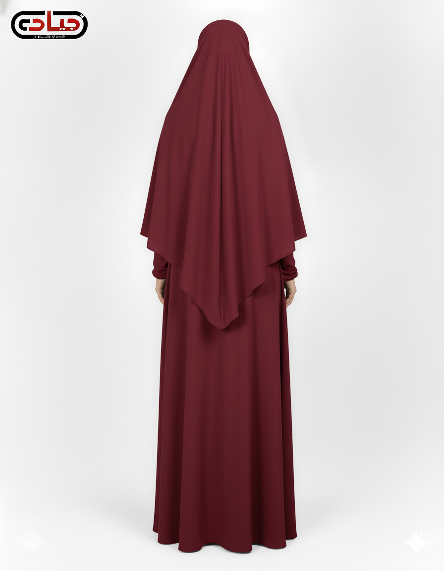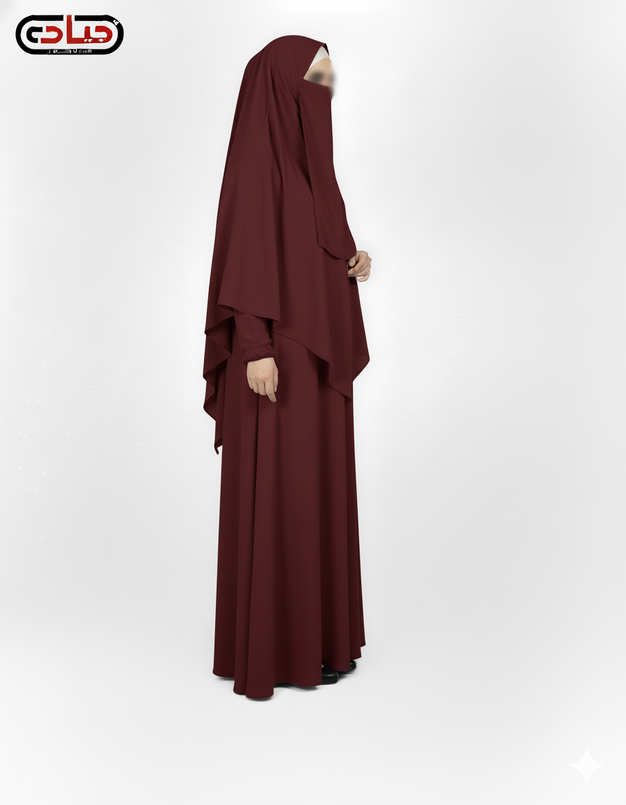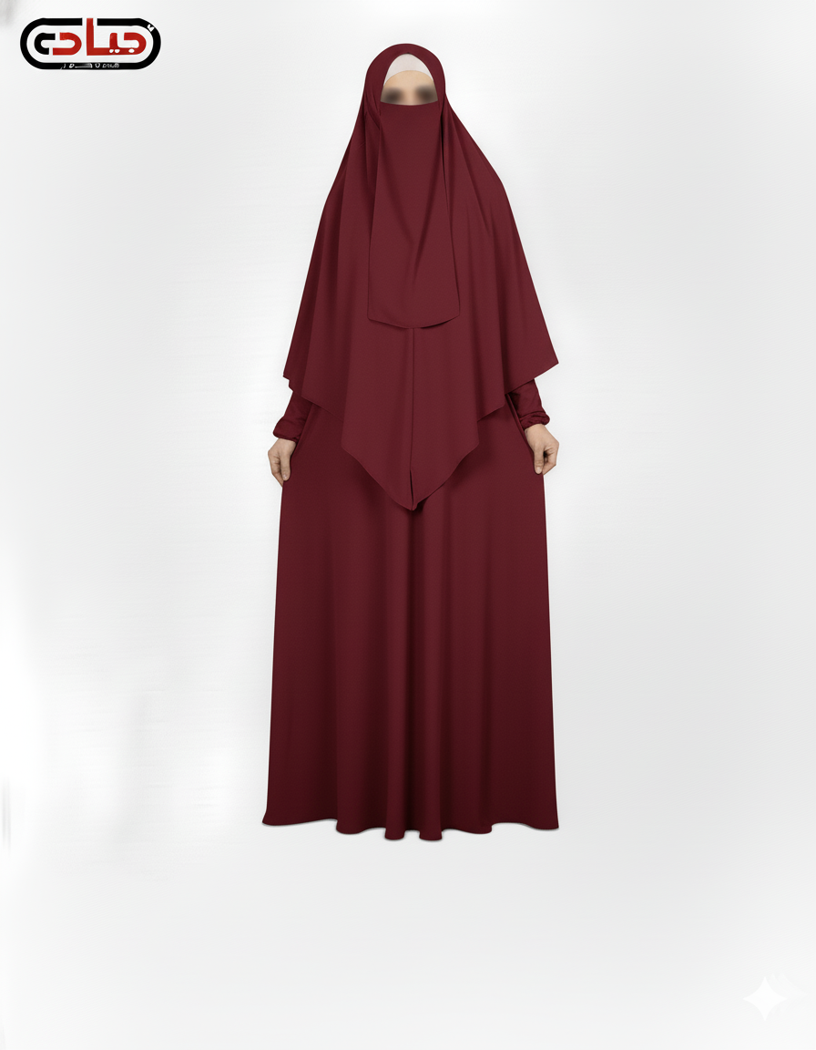 طقم محجبات موديل فرنسي مكون من عباية فضفاضة بحزام خصر وسوار استك ، خمار مثلث برباط داخلي ، نقاب استك بحجم قياسي xxl ،ماتريال رويال ناعم