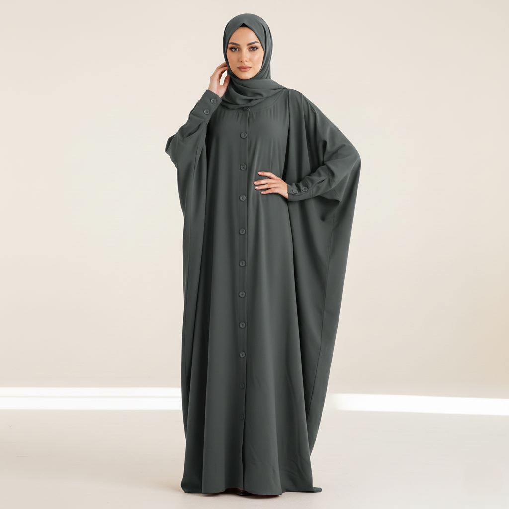 ادناء فراشة فضفاض مكون من عباية طبقتين بفراشة جانبية مع خمار تركي ونقاب استك من الرويال الملكي بحجم قياسي xxl