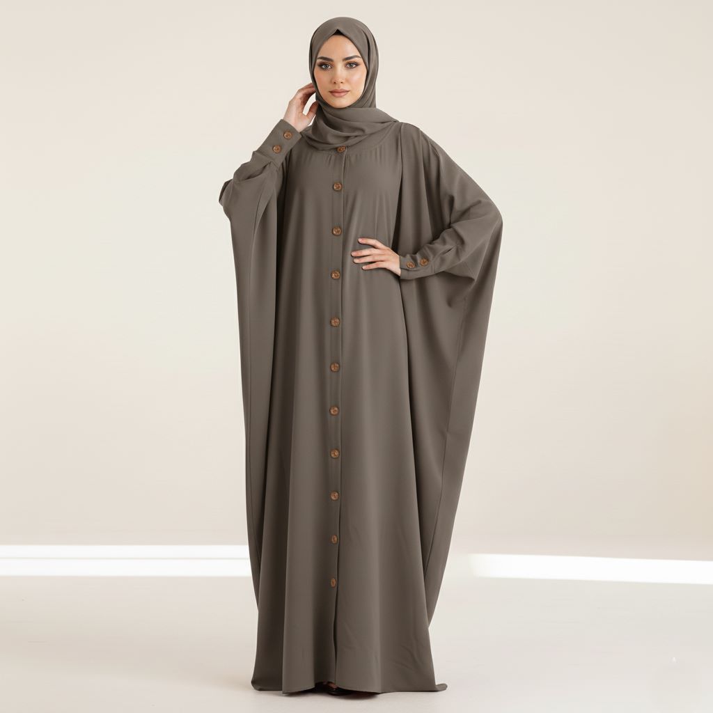 ادناء فراشة فضفاض مكون من عباية طبقتين بفراشة جانبية مع خمار تركي ونقاب استك من الرويال الملكي بحجم قياسي xxl