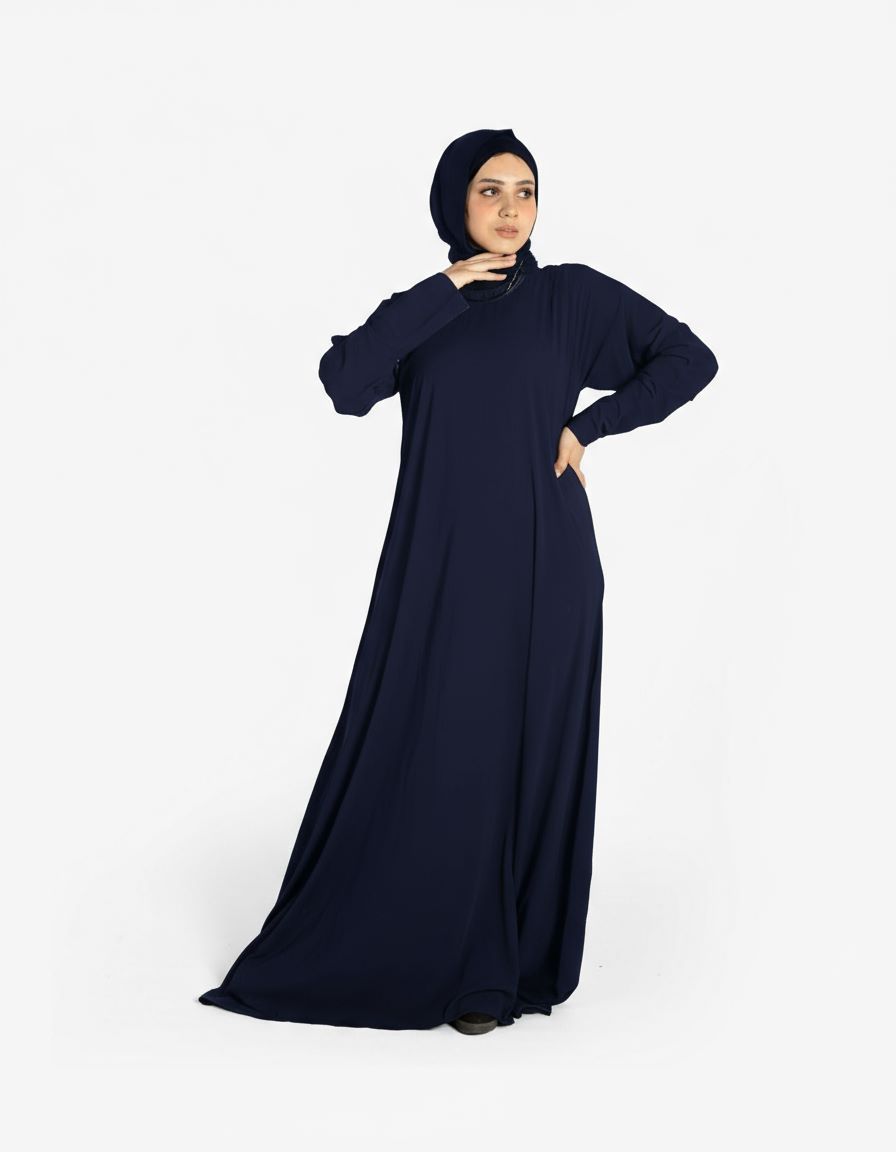 طقم محجبات موديل فرنسي مكون من عباية فضفاضة بحزام خصر وسوار استك ، خمار مثلث برباط داخلي ، نقاب استك بحجم قياسي xxl ،ماتريال رويال ناعم