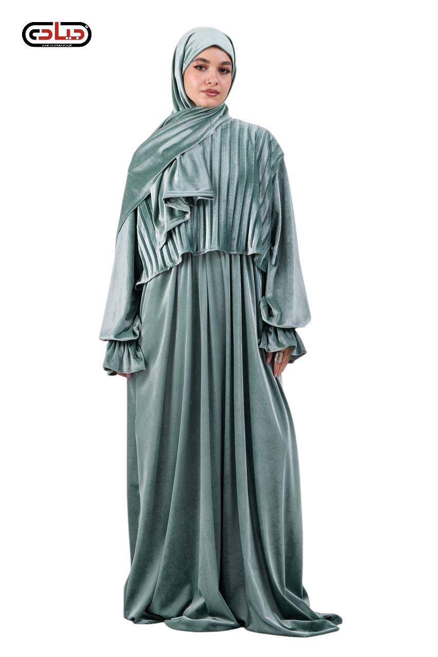 إسدال صلاة وإستقبال بطرحة متصلة وسوار أستك من القطن التركي المبرد عالي النعومة بحجم قياسي xl