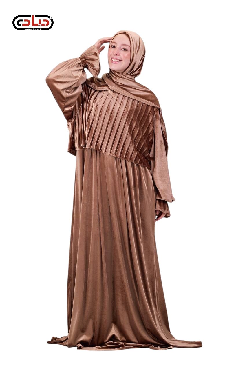 اسدال صلاة واستقبال بجوبيرة موديل مدرج بطرحة متصلة وسوار أستك مزود بسحّاب صغير من القطن التركي المعالج بحجم قياسي xxl