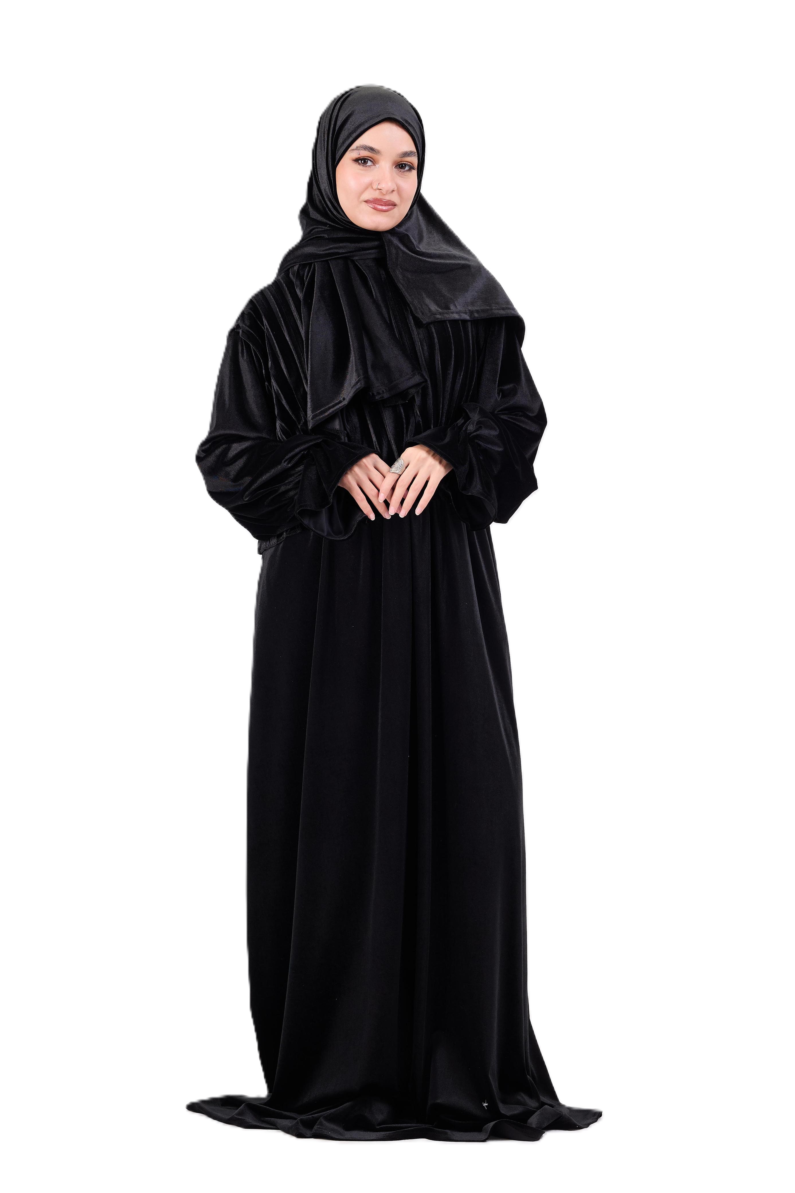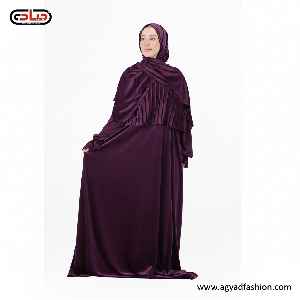 ملحفة صلاة وإستقبال فضفاضة من الساتان الأرميني عالي النعومة بطرحة سادة وسوار مغلق