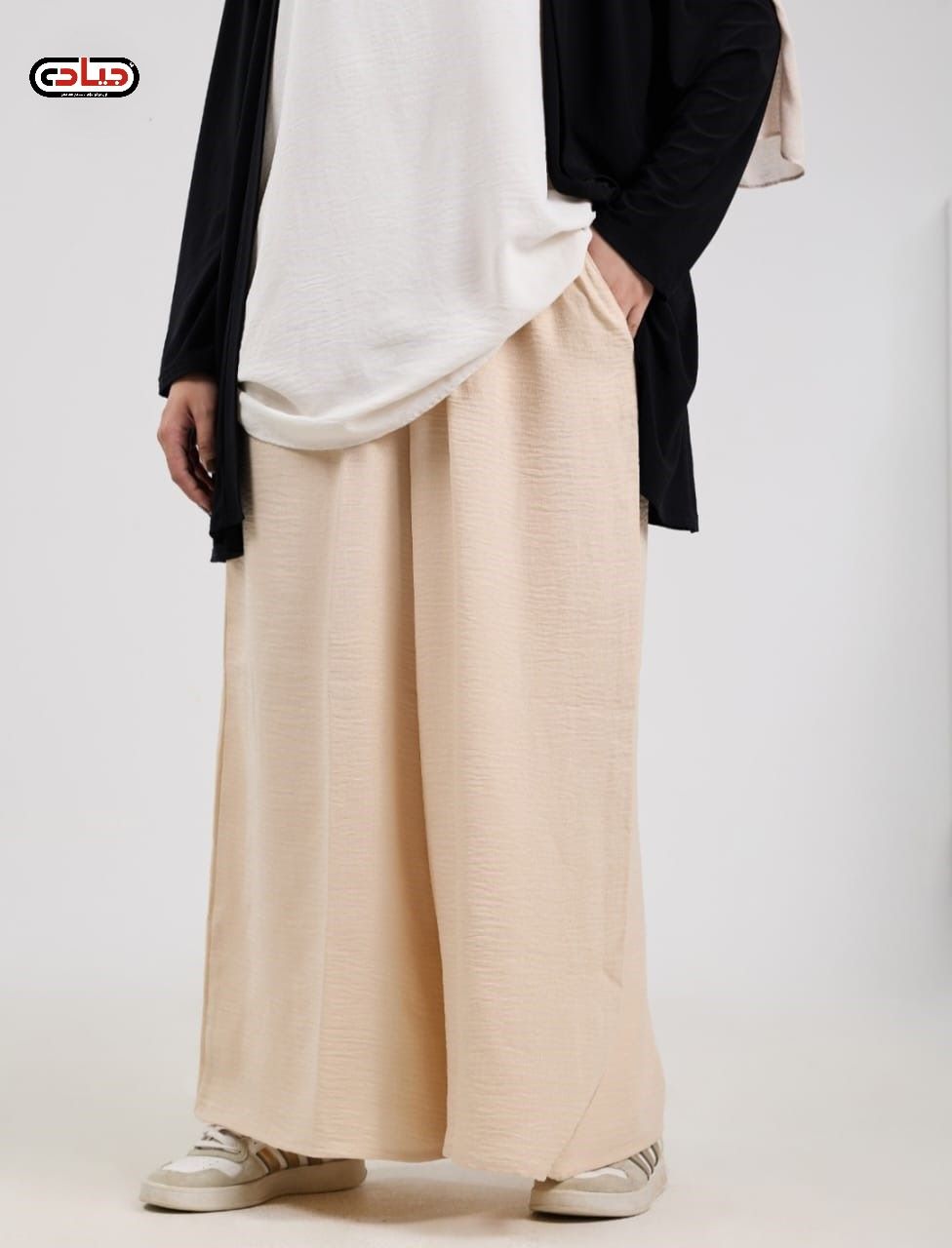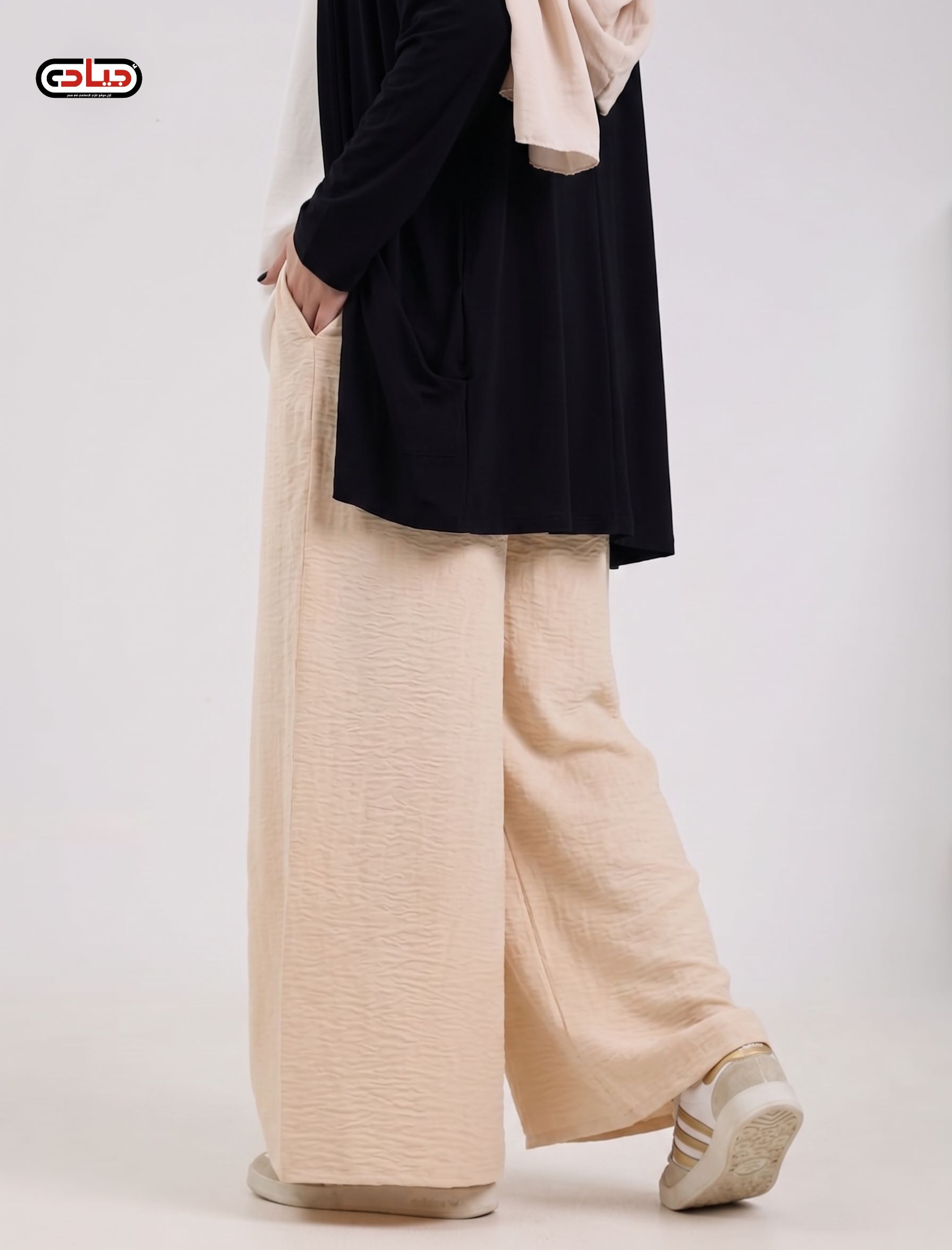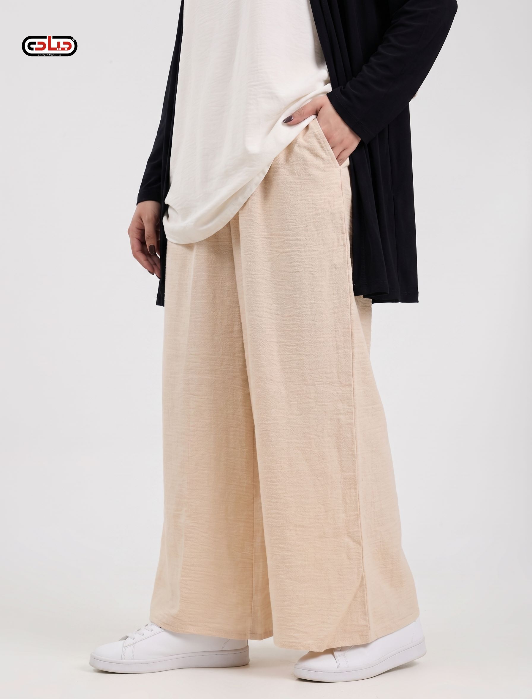استمتعي بالحرية المطلقة والأناقة العصرية مع البنطال الواسع ، حيث يجمع بين القصة الفضفاضة (Palazzo) والخامة المريحة التي تجعله رفيقكِ المثالي في مشاويركِ اليومية أو حتى في العمل. قصة Wide Leg عصرية مرونة في التنسيق: قطعة أساسية يمكنكِ تنسيقها مع "شميز" قصير، "تونيك" طويل، أو حتى "كارديجان" مفتوح للحصول على إطلالات متنوعة ومختلفة. الخامة:لينين خفيف الاحجام:L - XL - XXL